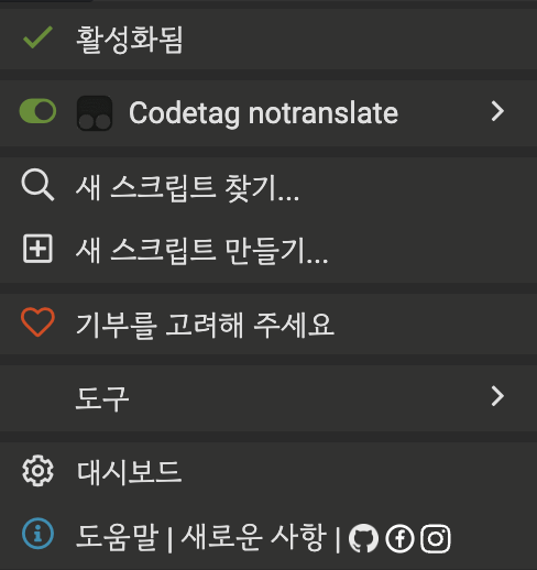 DeepL 크롬 확장을 사용하여 페이지를 통번역하면 Code 태그도 같이 번역되면서 줄바꿈이 흐트러지는데 Tampermonkey를 이용하면 translate="no" 속성을 추가하여 페이지 번역시 제외되는 부분을 만들수 있습니다. 아래에서 그 방법을 설명합니다.
